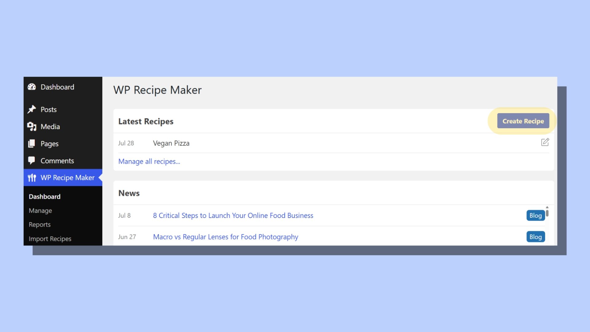 It’s time to share your first recipe with the world! Choose the recipe you’re most excited about. Pick something that’s easy to follow and will inspire your audience to get in the kitchen. Then, add your recipe to your WP Recipe Maker dashboard. No need for fancy formatting – the plugin handles that automatically, creating a professional-looking recipe card.