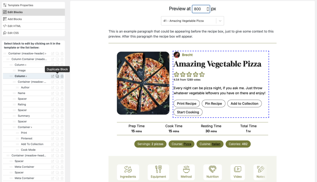 Our Template Editor is still the powerhouse you know and love, but we’ve significantly improved the usability. With the introduction of drag-and-drop capabilities and a modernized block selection interface, customizing your recipe templates is now as simple as it is powerful.
