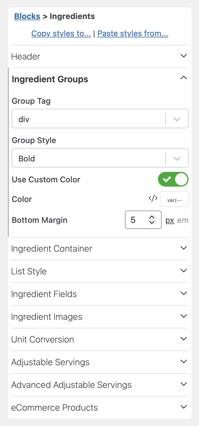 Using these features (instead of simply typing the values) makes sure that the amounts are correct, even when your visitor adjusts the serving size or changes the unit system.