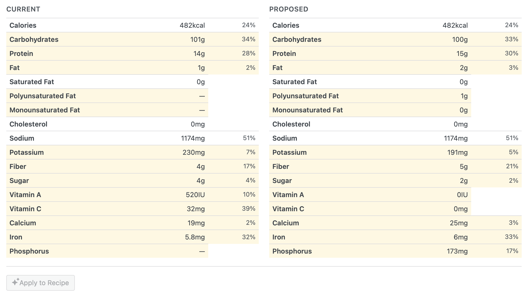 If you’re using our nutrition label feature, you can now have AI review your nutrition data for potential issues. It can flag values that seem off compared to the ingredients listed, helping you catch mistakes before they go live. It’s also a great tool if you need to handle a backlog of recipes without nutrition data.
